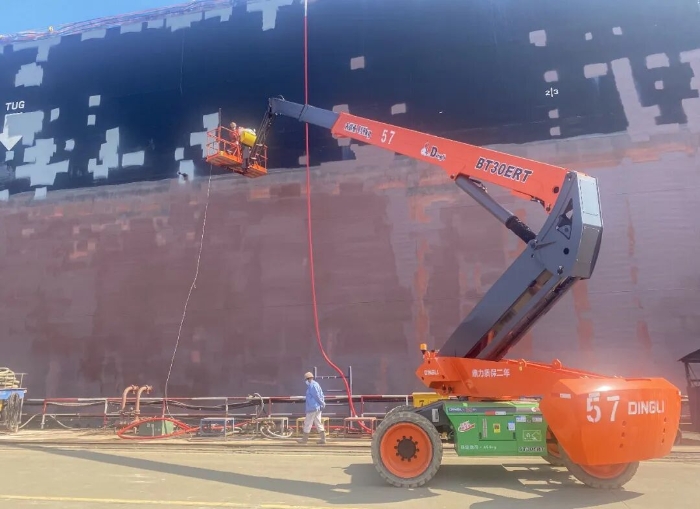 船舶,作為人類工業(yè)文明的集大成者,其龐大的身軀與復(fù)雜的曲面結(jié)構(gòu),對高空作業(yè)設(shè)備提出嚴苛要求,同時因其長期受海水侵蝕,維保是核心命題。鼎力敏銳洞察行業(yè)痛點,以高機智能平臺為載體,為船舶修造提供了一體化的綠色解決方案。